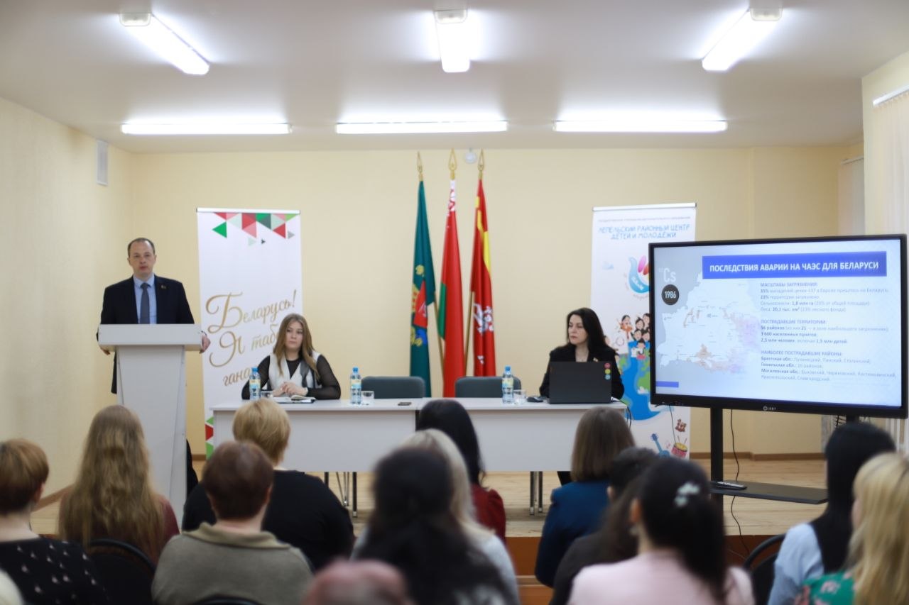 Единый день информирования на Лепельщине проходит масштабно и массово. Тема: «Чернобыль: от возрождения до устойчивого развития». Важная встреча сегодня утром собрала представителей управления по труду, занятости и социальной защите райисполкома, отдела по образованию, учебно-методического кабинета, территориального центра социального обслуживания населения, а также районного центра детей и молодежи.