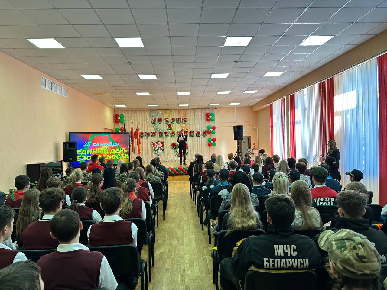Также в актовом зале ребят поприветствовали гости праздника и напомнили о важности соблюдения правил безопасной жизнедеятельности.