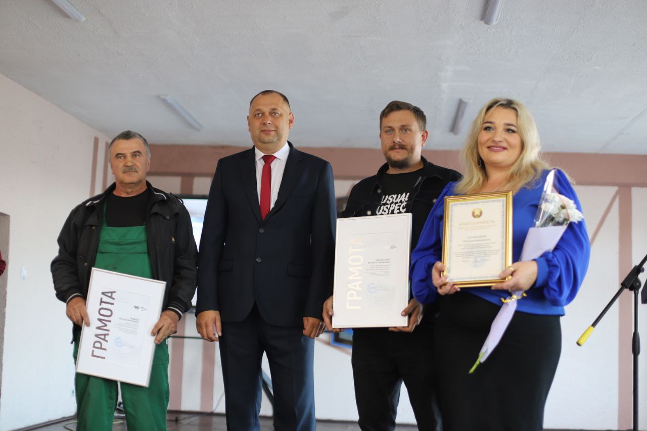 Лучшие работники предприятия получили сегодня высокие награды за многолетний добросовестный труд и высокие производственные показатели. Благодарностью Министра промышленности Республики Беларусь награждена Наталья Сотникова, Благодарность председателя райисполкома вручена Юрию Малькову, Грамоты ОАО «Минский тракторный завод» переданы Евгению Сильвановичу и Николаю Падабеду.