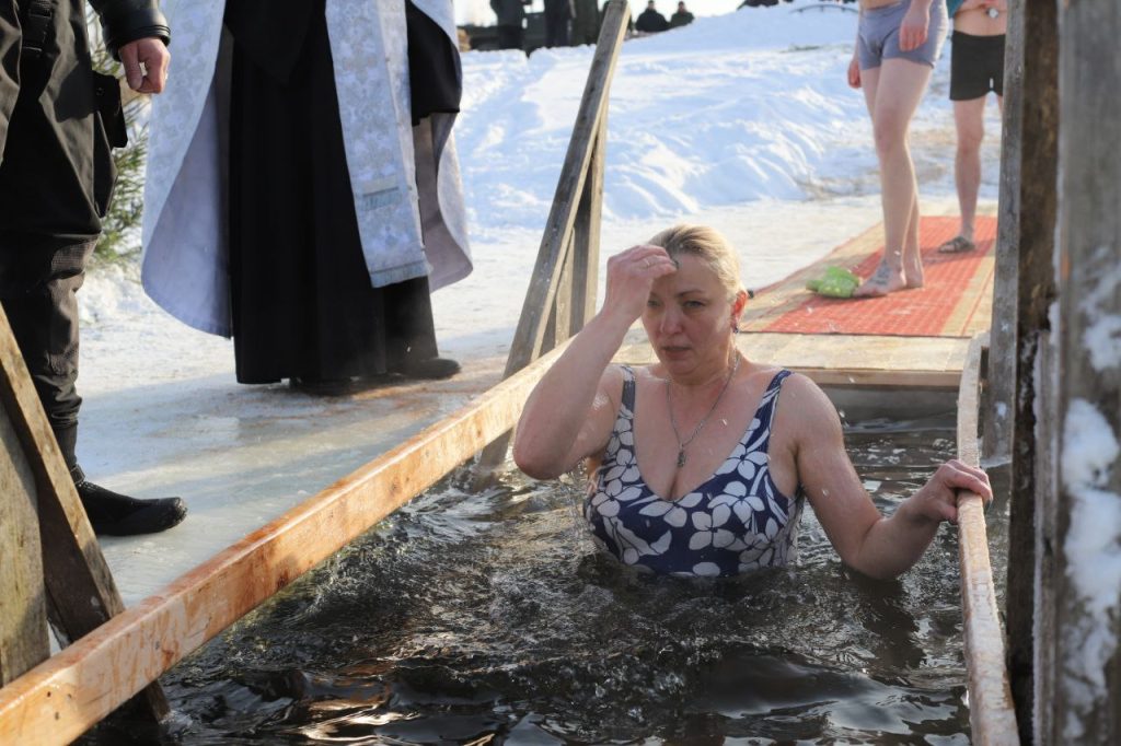 Нынешний январь подтвердил свое звание самого холодного месяца года. Вместе с обильными снегопадами пришли на Беларусь и крещенские морозы. Сегодня температура воздуха находилась в пределах 16-градусной отметки со знаком минус, но это не стало препятствием для лепельчан, желающих приобщиться к Крещенским купаниям.
