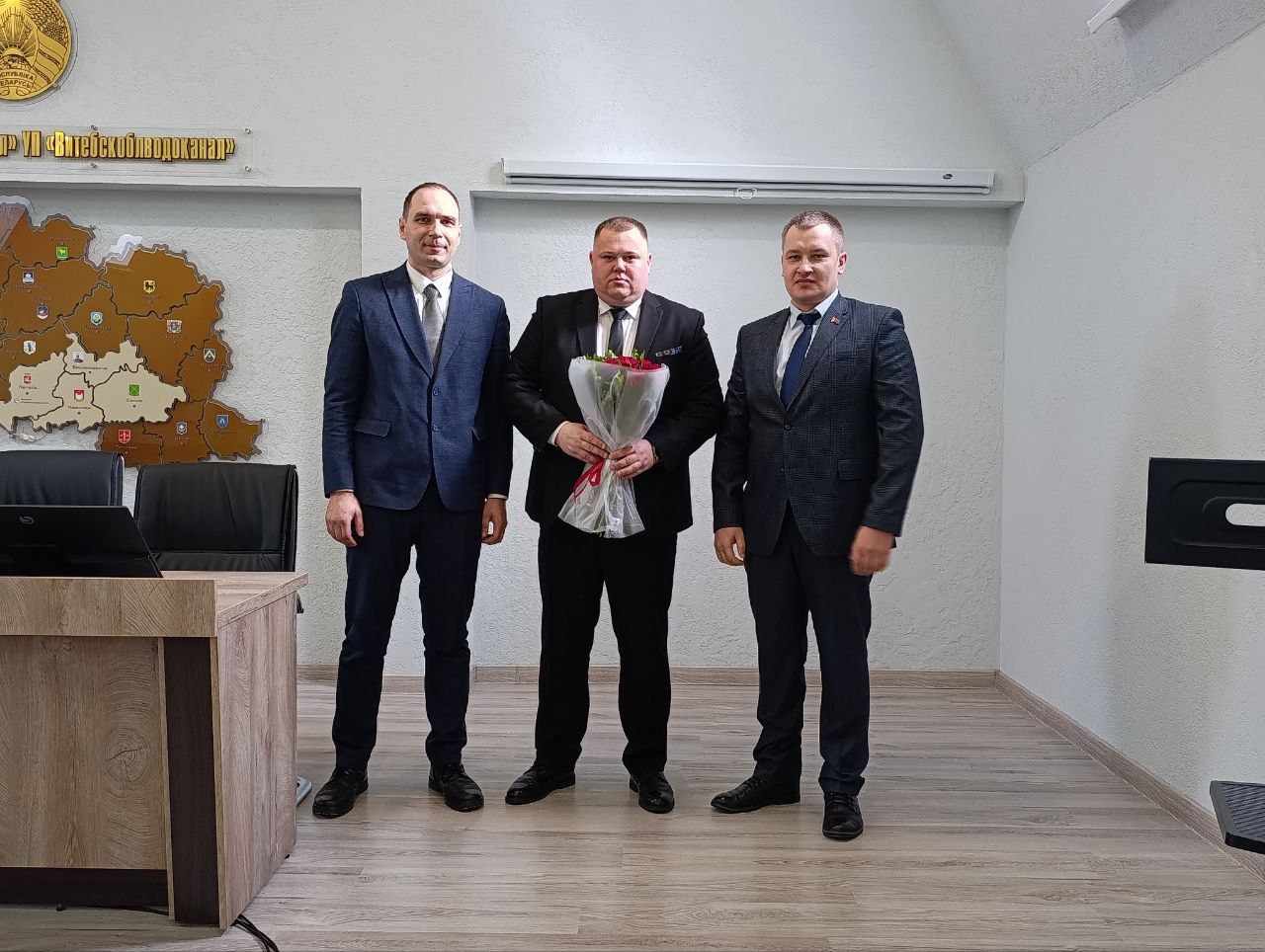Первый заместитель генерального директора – главный инженер УП «Витебскоблводоканал» Дмитрий Климанский представил работникам нового директора филиала «Лепельводоканал». Эту должность теперь занимает Головач Александр Николаевич.