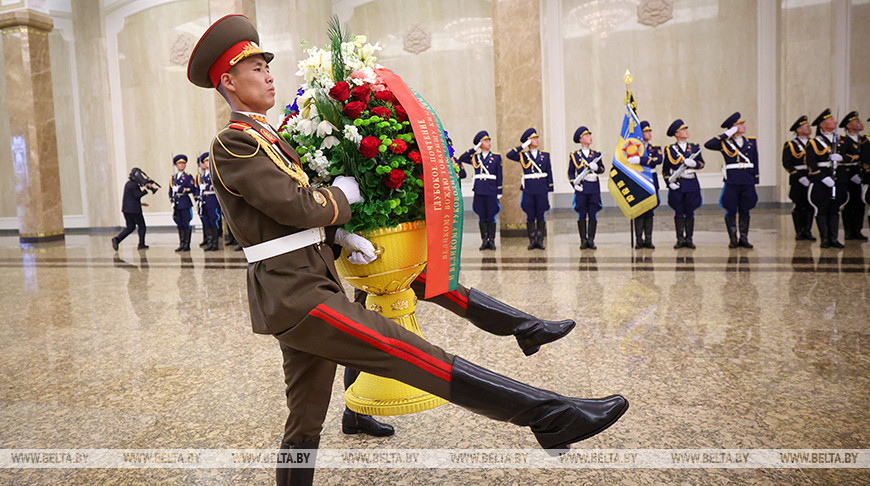 Президент Беларуси Александр Лукашенко в Пхеньяне посетил Кымсусанский дворец Солнца и почтил память руководителей КНДР Ким Ир Сена и Ким Чен Ира, передает корреспондент БЕЛТА.